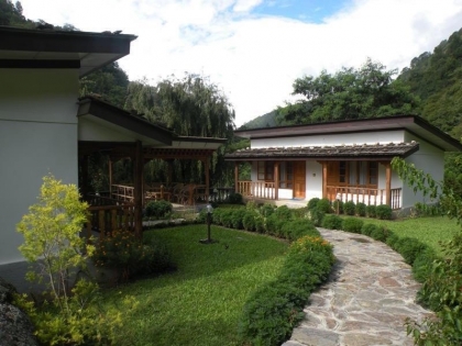 Schönes Mittelklasse Hotel in Paro mit einem malerischen Blick auf den Fluss.